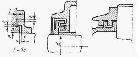Уплотняющее действие лабиринтного устройства основано на создании малого зазора сложной формы между вращающимися и неподвижными деталями узла. Зазор заполняют пластичной или жидкой смазкой.