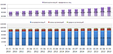 По данным Министерства по налогам и сборам Республики Беларусь, на 1 мая 2015 г. количество состоящих на учете в налоговых органах и осуществляющих финансово-хозяйственную деятельность малых и средних организаций достигло 109587 организаций, увеличившись по сравнению с началом года на 4,1 процента, а по сравнению с аналогичным периодом 2014 года - на 5,3 процента.
