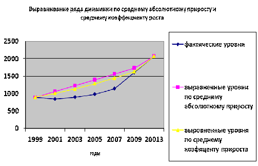 Таблица 5 и рисунок 3 показывают, что методом выравнивания ряда динамики по среднему абсолютному приросту с 1999 по 2013 гг. выявлена тенденция увеличения количества малых предприятий, причем ежегодно в среднем на 83,7 тыс. ед.