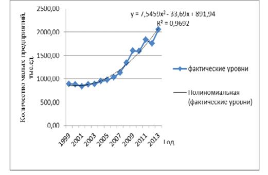 полиномиальной функции по данным количества малых предприятий за 1999-2013 гг.