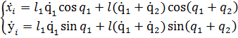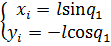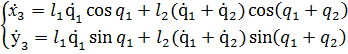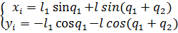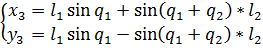 тогда получим координаты элемента плеча манипулятора на оси х и у