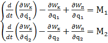 расчета нагрузочных диаграмм двигателей звеньев манипулятора Д1
