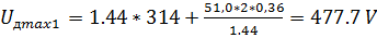 Определим значение максимального напряжения преобразователя для вентильного двигателя Д1