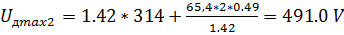 Определим значение максимального напряжения преобразователя для вентильного двигателя Д2