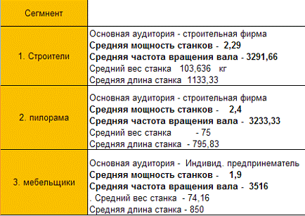 Таблица 1. Разделение рынка покупателей деревообрабатывающих
