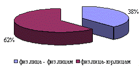 На рисунках 3-6 представлено процентное соотношение адресатов и отправителей среди юридических и физических лиц.