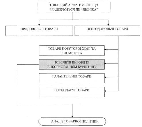 Об’єктом дослідження виступає торговельне підприємство - ДП "Діоніка" ЗАТ "Речовий ринок" (м. Рівне). Дочірнє підприємство "Діоніка" співпрацює з дочірнім підприємством "Укрбурштин" державної акціонерної компанії "Українські поліметали". Ювелірна фабрика ДП "Укрбурштин", що розташована в м. Рівне виготовляє ювелірну продукцію (високоякісні кулони, брошки, каблучки, буси, підвіски, кольє, браслети, намиста, заколки, сережки, мундштуки, люльки, картини, ікони, портрети) загальним асортиментом - більше 300 найменувань. Свої товари воно реалізує в місті Рівне через спеціалізований власний магазин, а також в інші регіони.