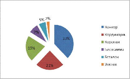 «Кординорм» и препарат «Коронал». Частота приобретения остальных препаратов БАБ