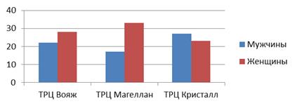 покупателей по полу, следует, что в ТРЦ Вояж и ТРЦ Магеллан в качестве