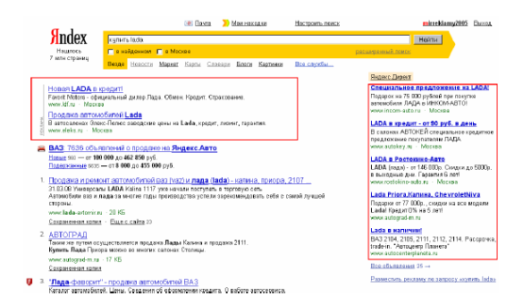 Рис. 3.1. Пример контекстной автомобильной рекламы