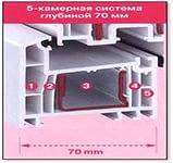 Системная глубина 70 мм и 5-ти камерное строение профиля обеспечивают прекрасные теплоизоляционные свойства системы.