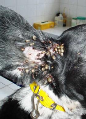 контакт з собаками, роздавлювання або укуси кліщів. |
