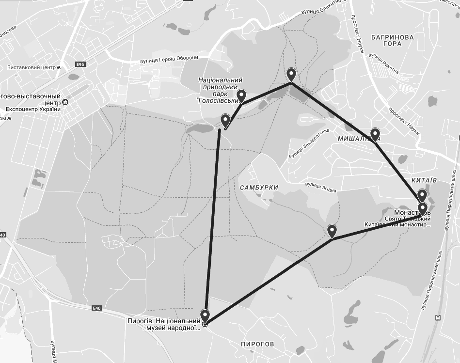 Територія національного природного парку «Голосіївський» знаходиться в південній частині м. Києва, на захід від Дніпра на крайній півночі лісостепової фізико-географічної зони.