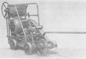 Електрична щітка для зачистки швів ДС- 505 (Д- 378) призначена для очищення поверхні плит цементно-бетонних покриттів, що підлягають ремонту, а також для розчищення швів і тріщин після їх розшивки. Електрощітка змонтована на триколісному візку, що пересувається вручну. Привід робочого органу ( циліндричної або дискової щітки) здійснюється від електродвигуна через клиноременную передачу (рис. 8).