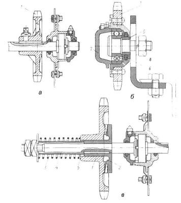 Рисунок 2 – Конструкції зірочок (а, б) і запобіжна муфта (в) ланцюгової передачі.