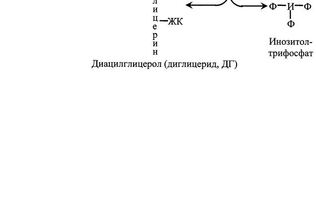 Образующийся фосфатидилинозитолдифосфат расщепляется под действием специфического мембраносвязянного фермента фосфолипазы С, в результате чего образуются два вторых посредника: диглицерид (диацилглицерол, ДАГ) и инозитолтрифосфат (ИФ3).