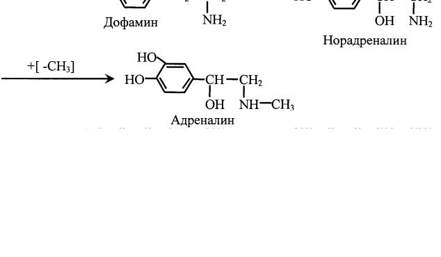 В мозговом веществе надпочечников вырабатываются адреналин и норадреналин. Они образуются из аминокислоты тирозина (рис. 8).