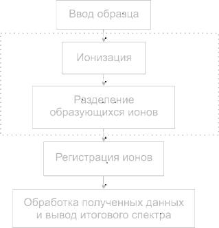 Прибор, используемый для получения масс-спектра, называется масс-спектро- метром. На рисунке 1 приведена схема его работы.