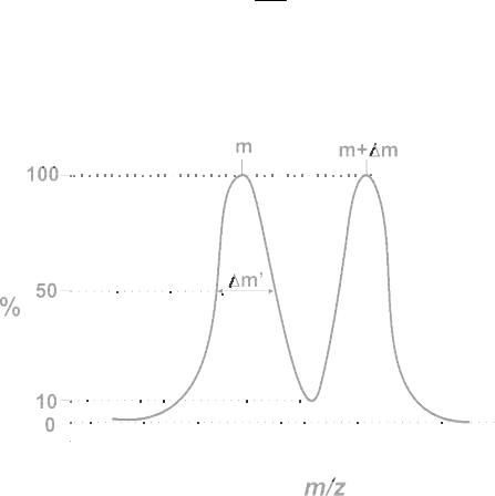 Иными словами, разрешение 1000 означает, что пики с массами 100.0 и 100.1 Да отделяются друг от друга, то есть не накладываются вплоть до 10% высоты. Это определение применимо для магнитных масс-анализаторов. Для других анализаторов, в которых сигналы ионов имеют тенденцию к уширению, подобное вычисление разрешения дает заниженное значение, поэтому более широким определением разрешающей способности является отношение массы данного пика к его ширине, взятой на половине высоты, ∆m’ (рисунок 18). Важно при сравнении различных анализаторов рассчитывать разрешение по одному и тому же способу. Мы будем пользоваться разрешением, рассчитанным по второму способу, используя ширину на половине высоты пика.
