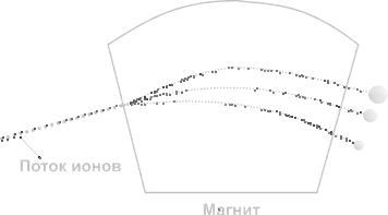 Рисунок 19 – Действие магнитного поля на траекторию движения ионов
