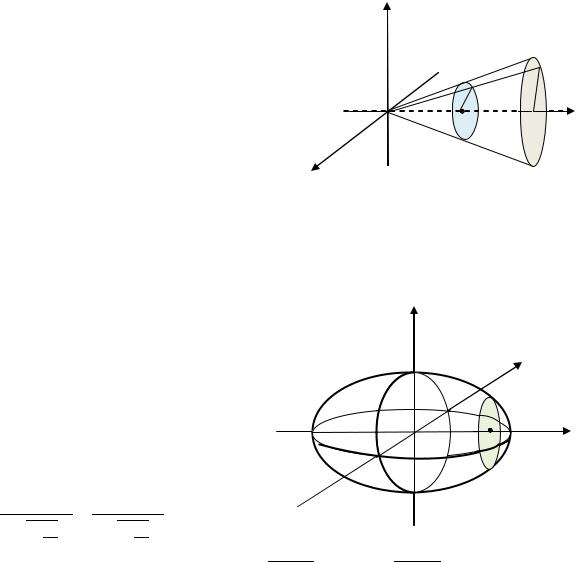В сечении кругового конуса, проведенном в точке перпендикулярно к оси абсцисс, будет круг некоторого радиуса . Площадь круга равна .