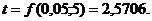 Определение табличного значения критерия Стьюдента, который представляет собой