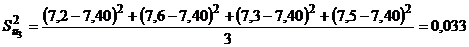 2) Определение выборочной (построчной) дисперсии для каждого опыта -