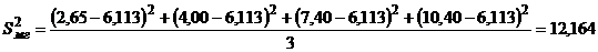 6) Определение межгрупповой дисперсии - меры отклонения средних значений параметра в опытах от среднего значения этого параметра в опытах от среднего значения этого параметра во всем эксперименте: