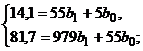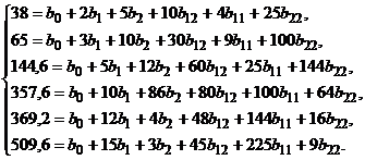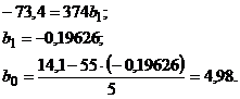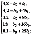 результате получаем данные для определения коэффициентов уравнения: