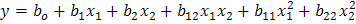 Полное квадратное уравнение для двух факторов имеет вид: