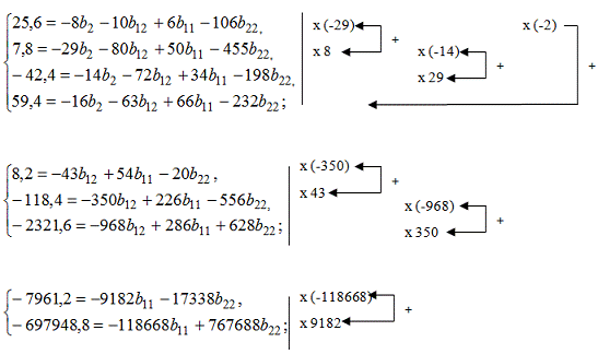избавиться от b1, домножаем 1-е уравнение сначала на (-2) и