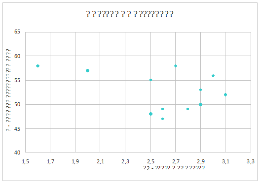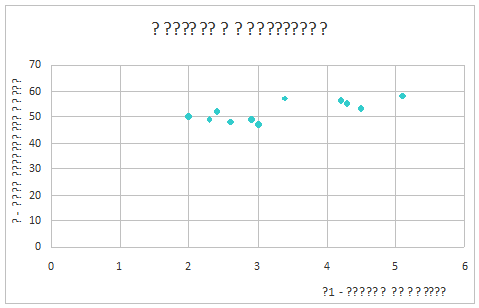 На основании диаграммы рассеяния можно сделать вывод о позитивной зависимости продолжительности жизни от фактора х1 (т.е. у будет расти с ростом х1). Наиболее подходящая форма функциональной зависимости - линейная.