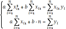 Оценим параметры линейной двухфакторной эконометрической модели с помощью метода наименьших квадратов. Для этого составим и решим систему уравнений:
