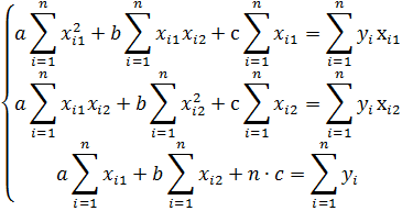 В целом необходимо определить параметры двухфакторной эконометрической модели- y=ах1+bx2+c ,наилучшим образом согласующейся с опытными точками.