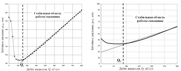 этого заметим, что во многих случаях в рабочем диапазоне дебитов возрастающий участок