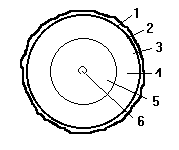 1 - кора, 2 - луб, 3 - камбий, 4 - заболонь, 5 - ядро, 6 - сердцевина (рис. 1).