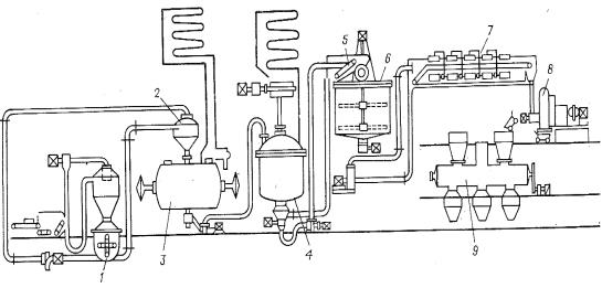 центрифуга; 9 - сушилка.