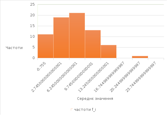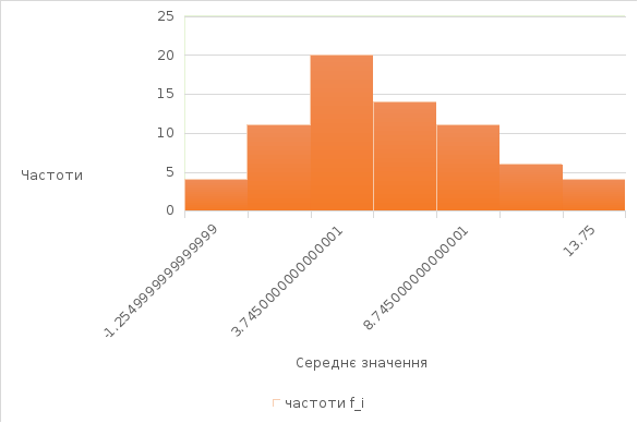 Гістограма 1.1. Значення частот для нормального розподілу.
