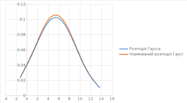 Графік 2.1. Густина нормального розподілу (розподілу Гаусса).