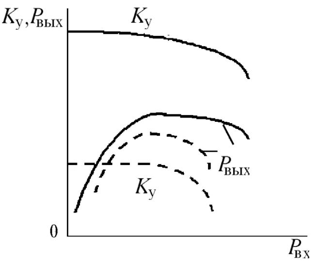 На рисунке Рвых и Ку сплошными линиями > пунктирных.
