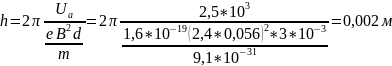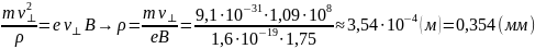 Расчет радиус спиральной траектории электрона (вычисляется из условия баланса центробежной и магнитной сил):