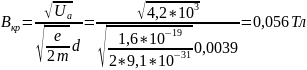 Расчет индукции магнитного поля (вычисляется из условия циклотронного резонанса):