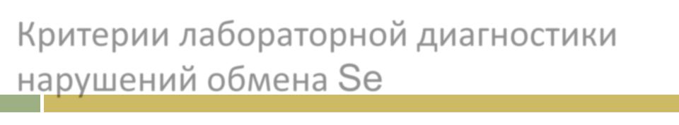 Оценка активности селенопротеина Р (SEPP1). Установлено, что приблизительно 40-60% селена в плазме представлено SEPP1. SEPP1 содержит 10 атомов Se и является основным его транспортером к периферическим тканям.