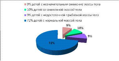 массой тела на протяжении всего учебного года, 9% детей с недостаточной