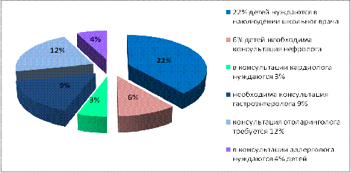 в наблюдении школьного врача нуждаются 22% детей, консультация нефролога