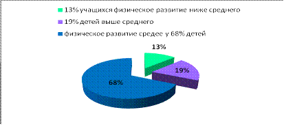 обследуемых детей у 13% учащихся физическое развитие ниже среднего, 19% детей