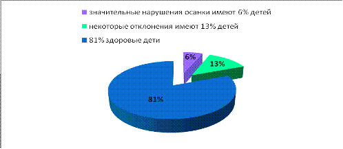 значительные нарушения осанки имеют 6% детей, некоторые отклонения имеют 13%