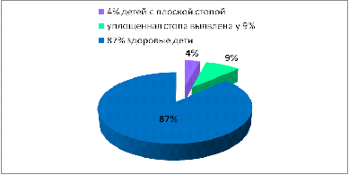 По данным обследования выявлено три ребенка с плоской стопой, что
