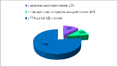 артериальной гипотонией 13%, с повышенным артериальным давлением 10% детей