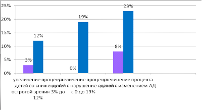 детей со сниженной остротой зрения с 3 % до 12 %, изменение осанки не
